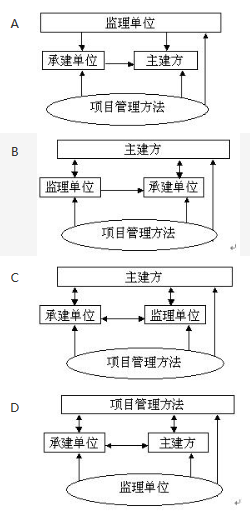 单选题 信息系统项目的实施涉及到主建方、承建单位和监理单位,而三方都需要采用项目管理的方法以完成其在项目实施中所担负的责任。下图( )正确表达了这种"三方一法"的关系。