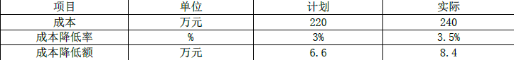 某项目施工成本数据如下表。应用差额计算法分析,该项目成本降低率提高对于成本降低额的影响是( )。