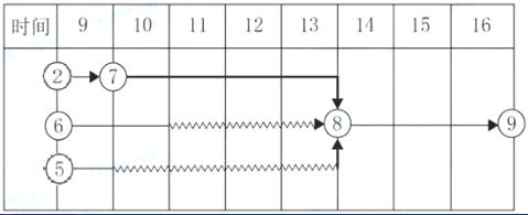 ②→⑦进度延误一个月;⑥→⑧进度正常;⑤→⑧进度提前1个月。总工期延误1个月。