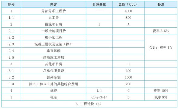 万元;D:(4000+180+1500+80)×9%=518.4 万元;E:4000+180+1500+80+518.4=6278.4 万元。