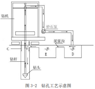 (1)钻机:反循环回旋钻机;C:护筒;D:沉淀池;E:泥浆池。