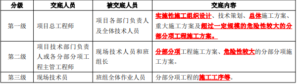 【解题思路】技术交底必须在相应工程内容施工前进行。施工技术交底应分级进行。