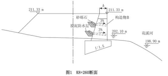 2-2.墙身中的构筑物B是泄水孔。A为波形梁护栏。