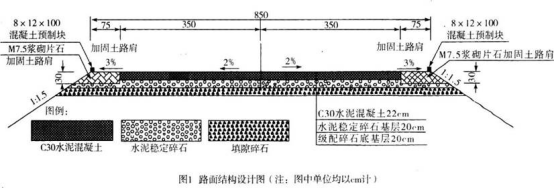 加固土路肩的横截面面积:[75+(75+30×1.5)] × 30/2=2925(cm2);