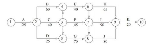 1.关键线路:①→②→④→⑥→⑦→⑨→⑩和①→②→③→⑤→⑧→⑨→⑩(或 A→B→E→I→K 和 A→C→G→J→K)。