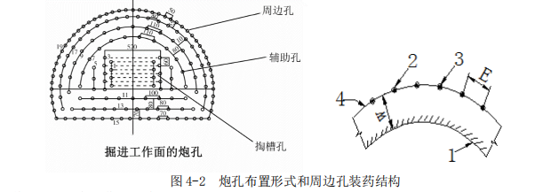 3.光面爆破起爆顺序:掏槽孔→辅助孔→周边孔。