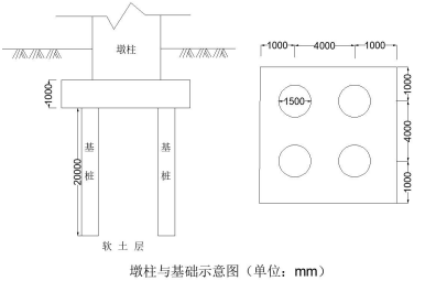 1、根据桩号描述,中心桩号为 K10+500,第二联起点桩号为 K10+500-45=K10+455,第二联终点桩号为K10+500+45=K10+545,计算发现只有第二联位于淤泥质土段,第二联共三跨,有四个桥墩,每个桥墩 4 根桩基,共 4×3=12 根桩需要改为人工挖孔桩施工。