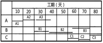 因BC之间有10天的技术间歇,因此总工期T=KAB+KBC+(10+10+10)+10=10+30+30+10=80d