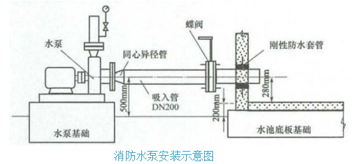 (3)消防水池应采用柔性防水套管;如果使用刚性防水套管,水泵吸入管上应设置 柔性接头。