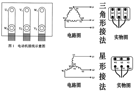 2. 1)图中电动机接线方式为三角形连接;