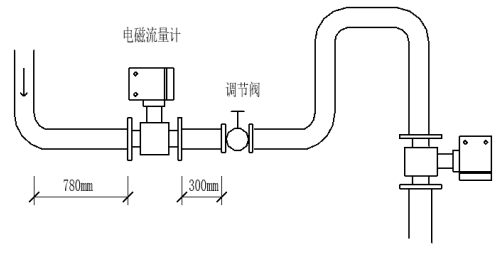 理由:电磁流量计的下游应有 4~5 倍管径长度的直管段,因此直管段长度应为 400~500mm。