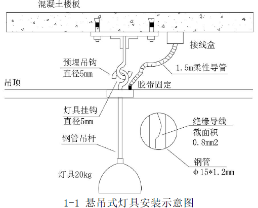 (2)钢管吊杆壁厚不少于1.5mm;