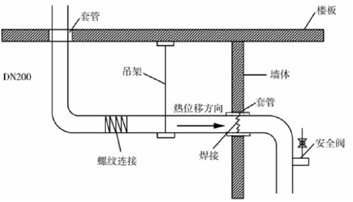 (3)有热位移的管道,吊架吊点应设在位移的相反方向,按位移值的1/2偏位安装。