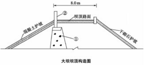 某水库枢纽工程包括大坝、溢洪道等,大坝坝顶示意图如下,①和②所代表的部位名称为( )。