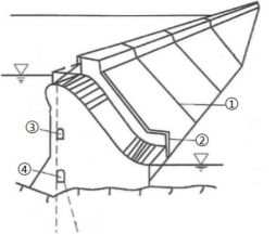 1.①:横缝;②:导墙;③:检修、排水廊道;④:基础灌浆廊道