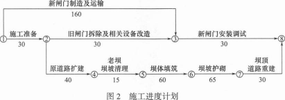 优化后的土石坝加固后续工作的施工进度网络计划如图3所示: