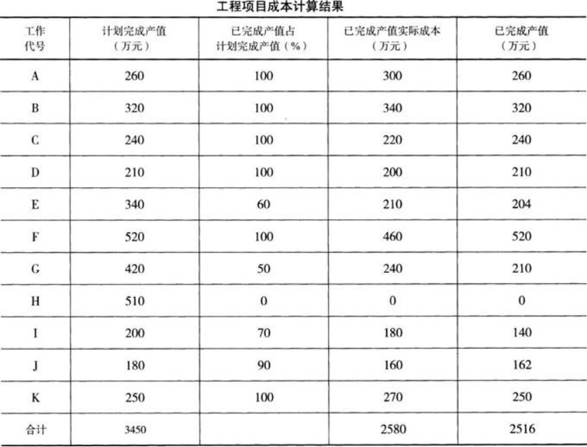 第7个月末时,已完工程实际成本为2580万元,已完成产值为2516万元,计划完成产值为3450万元。