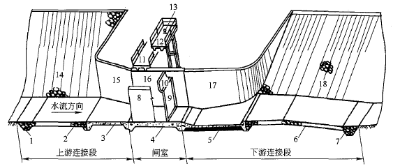 水闸的组成如下图所示,其中消力池部分的编号是( )。