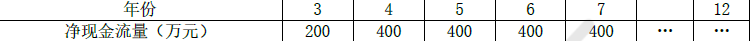 某具有常规现金流量的投资项目,建设期2 年,计算期12 年,总投资1800 万元,投产后净现金流量如下表。项目基准收益率