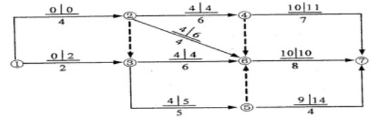 某工程双代号网络计划如下图所示,图中已标出每项工作的最早开始时间和最迟开始时间,该计划表明( )。