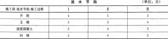 某基础工程包括开挖、支模、浇筑混凝土及回填四个施工过程,分3个施工段组织流水施工,流水节拍见下表,则该基础工程的流水施工