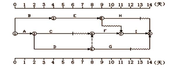 某工程双代号时标网络计划如下图所示,其中工作 B 的总时差和自由时差为( )天。