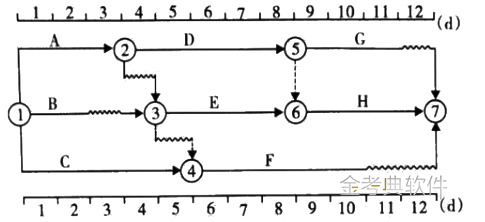 某工程双代号时标网络计划如下图所示,正确的结论有( )。