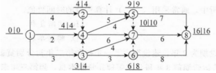 某工程双代号网络计划中各节点的最早时间与最迟时间如下图所示,图中表明()。