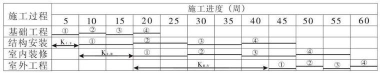 某工程组织流水施工如下图所示,若为缩短工期采用加快的成倍节拍流水施工,可确定的流水步距为()周。