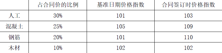 某工程施工合同约定根据价格调整公式调整合同价。已知不调值部分占合同总价的比例为15%,可参与调值部分的费用类型、占合同总