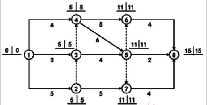 某分部工程双代号网络计划如图所示,图中已标出每个节点的最早时间和最迟时间,该计划表明( )。