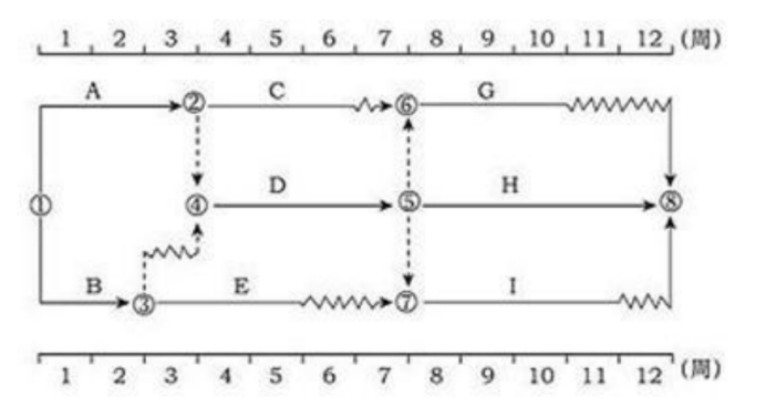某工程双代号时标网络计划如下图所示,其中工作B的总时差为( )周。