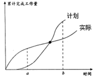 某工作实施过程中的S曲线如下图所示,图中a和b两点的进度偏差状态是()。