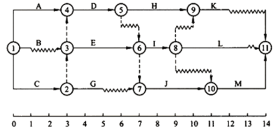 某分部工程双代号时标网络计划如下图所示,其中工作A的总时差和自由时差()天。
