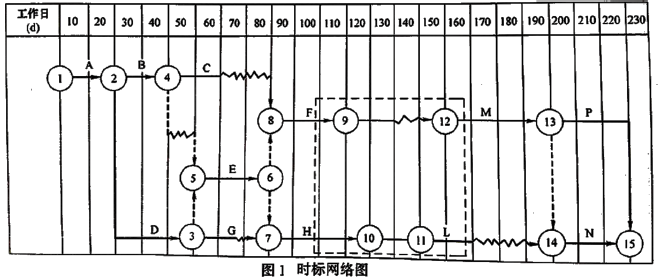 和⑴→⑵→⑶→⑸→⑹→⑺→⑽→⑾→⑿→⒀→⒁→⒂工期为220天。