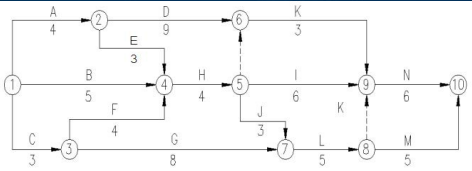 (2)关键线路为:A→E→H→J→L→N;C→F→H→J→L→N;