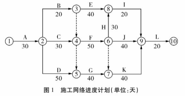 4.事件2 发生后关键线路变化为A→C→F→J→L,工作J 赶工10 天增加赶工费80 万少于业主收益200 万,所以应当将工作J 赶工10 天。(具体计算略)
