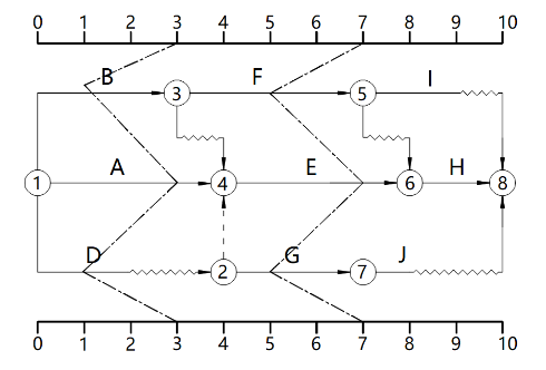 某工程项目时标网络计划图(如下图所示),下列描述错误的是( )。