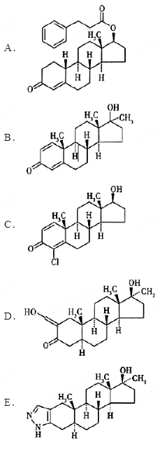 最佳选择题 在睾酮的A环上引入羟甲烯基,具有较高蛋白同化作用的药物是( )。