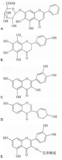 配伍选择题 其结构中含有邻二酚羟基,可用于治疗毛细血管脆性引起的出血症,并用做高血压的辅尉治疗的黄酮类化合物是