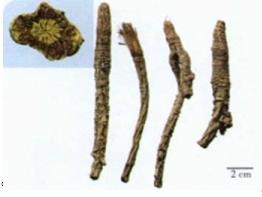 呈长卵形,多不开裂,表面绿褐色,突起的灰白色小斑点较少,味苦的药材是