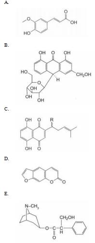 配伍选择题 《中国药典》规定,芦荟的含量测定指标成分芦荟苷的结构是