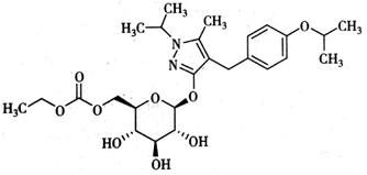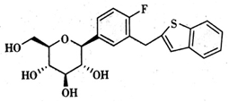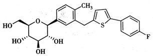 第一个发现的该靶点药物是天然产物根皮苷,是由根皮素和配糖体为葡糖苷结合成的苷,但由于它容易被体内的糖苷酶水解成糖苷和根皮素,口服吸收差,不良反应较大,因此没有成为糖尿病的治疗药物。以根皮苷为先导化合物,合成了O-糖苷类似物,考虑到O-糖苷的稳定性,制备了稳定性强的C-糖苷类似物。下列结构药物中,属于稳定性较差的O-糖苷类似物的是
