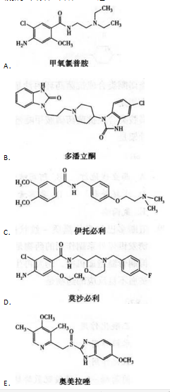 配伍选择题 为苯甲酰胺的类似物,第一个用于临床的多巴胺D2受体阻断药,有中枢神经系统副作用(锥体外系症状)的促胃肠动力药