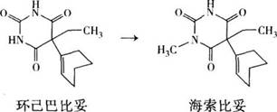在环己巴比妥结构的N原子上引人甲基,得到海索比妥(如图),结果是
