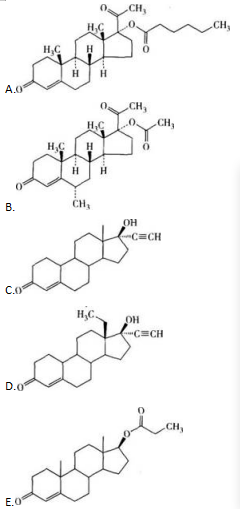 最佳选择题 为黄体酮的17α-己酰氧基物,是脂溶性强的前药,肌内注射后缓慢释放,药效持续可达1个月,临床作长效避孕药的是