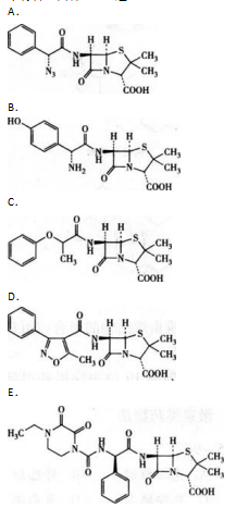 配伍选择题 在青霉素G结构6位侧链引入4-羟基苯甘氨酸,得到的口服吸收好,抗菌谱广的药物是