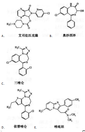 配伍选择题 属于吡咯烷酮结构,以S一(+)上市,具有很好的短效催眠作用的药物是