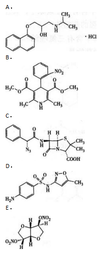 配伍选择题 具有硝酸酯结构,体内代谢物有活性的药物为