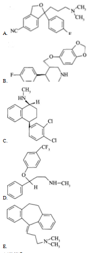 最佳选择题 结构中具有两个手性中心,临床上用(-)-(3S,4R)-异构体,体内不能脱甲基代谢,代谢物也无活性的5-HT再摄取抑制剂抗抑郁药物是